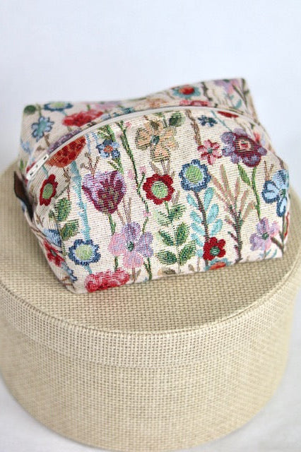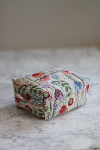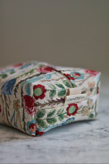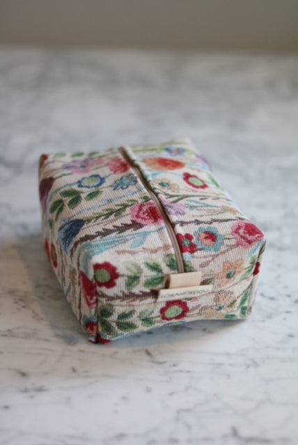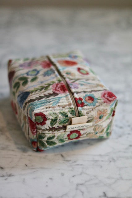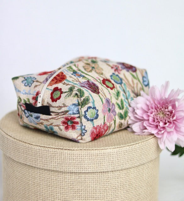 Kaunis ja kompaktin kokoinen meikkipussi upeassa kukkakuosissa. Tuo iloa ja käytännöllisyyttä arkeesi meikkipussilla, jonka voit sujauttaa vaikka käsilaukkuusi mukaan! Sisällä kätevä muovivuoraus, joka helpottaa tuotteen puhtaanapitoa ja pidentää käyttöikää.
